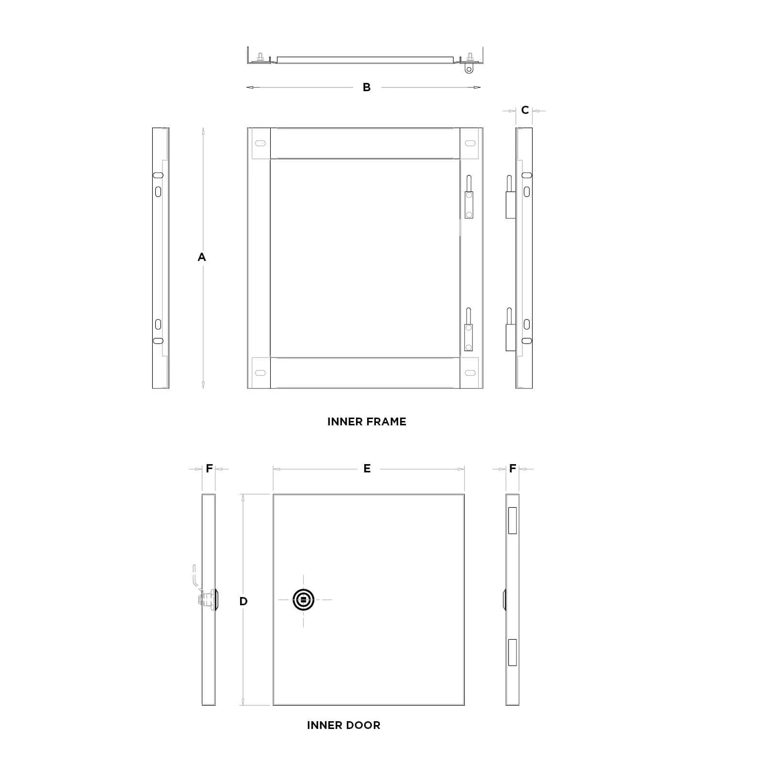 | Model No | Inner Frame Dimensions (mm) | Door Dimensions (mm) | Suits Enclosure | ||||