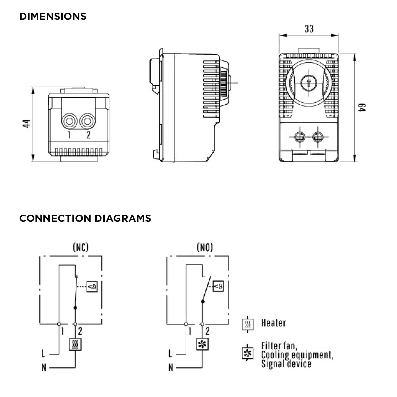 • Contact maker for regulating filter fans and heat exchangers or for switching signal device when temperature limit has been exceeded