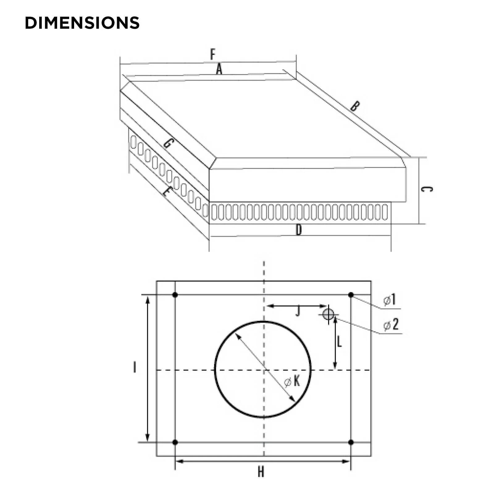 | Type | A/B | C | D/E | F/G | H/I | J | ΦK | Φ1 | Φ2 | L |