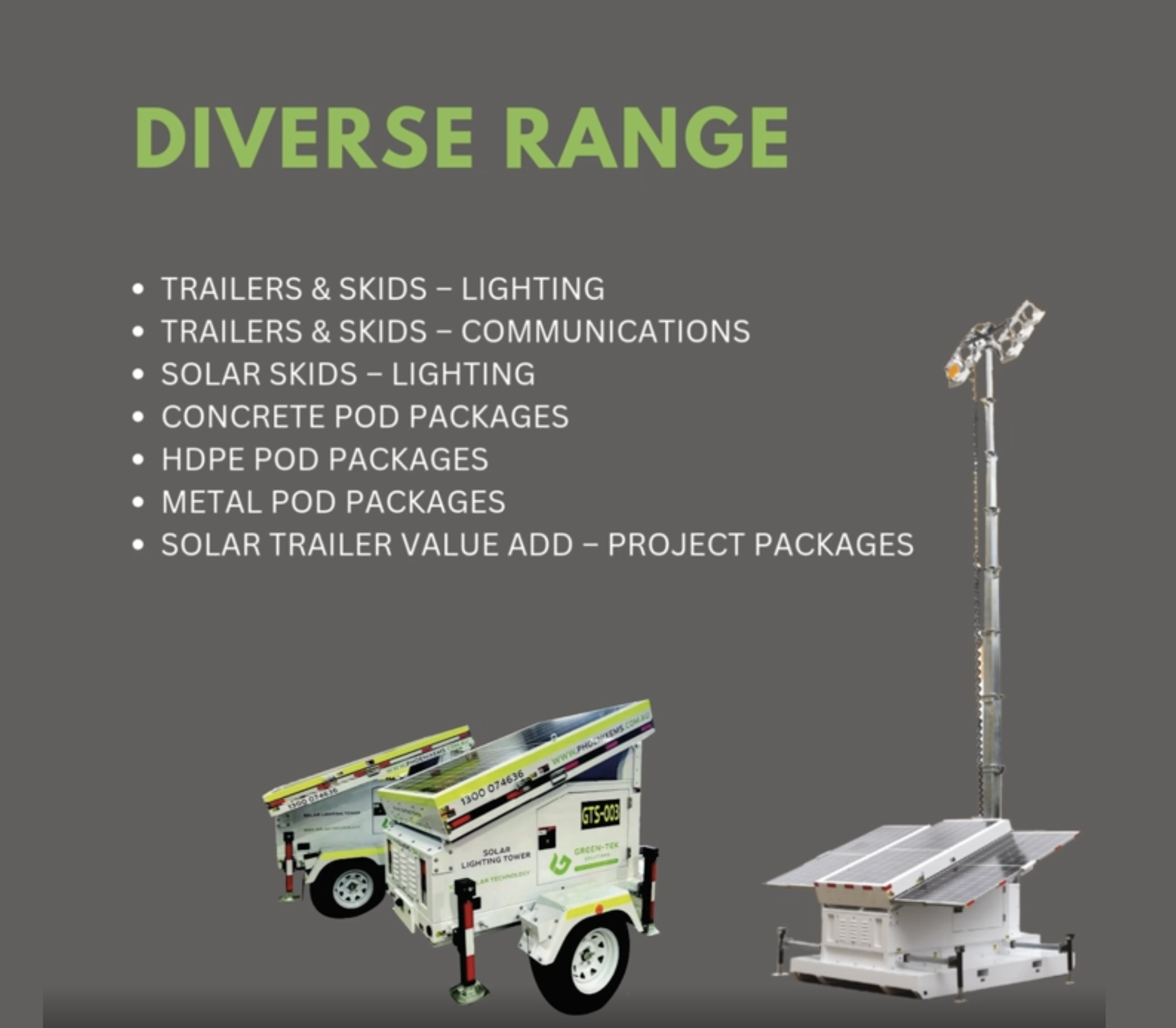 Green-Tek™ Solutions delivers innovative, environmentally conscious solar technology designed to reduce emissions, lower operational costs, and simplify maintenance for mining, civil, rail, and industrial applications. Our zero-emission products are engineered for resilience and performance in the toughest Australian conditions.