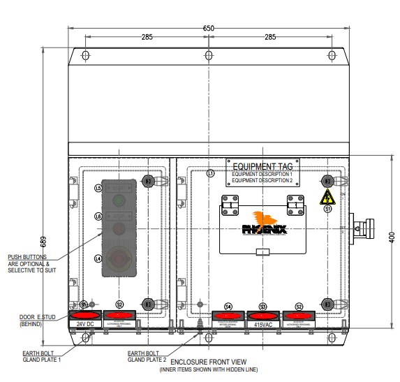 The Phoenix EMS Fully Welded LCS provides secure and durable electrical control and termination for industrial and mining environments. Its 316 stainless steel construction with IP66 protection, concealed hinges, and fully earthed doors and gland plates ensures long-term reliability and operator safety.