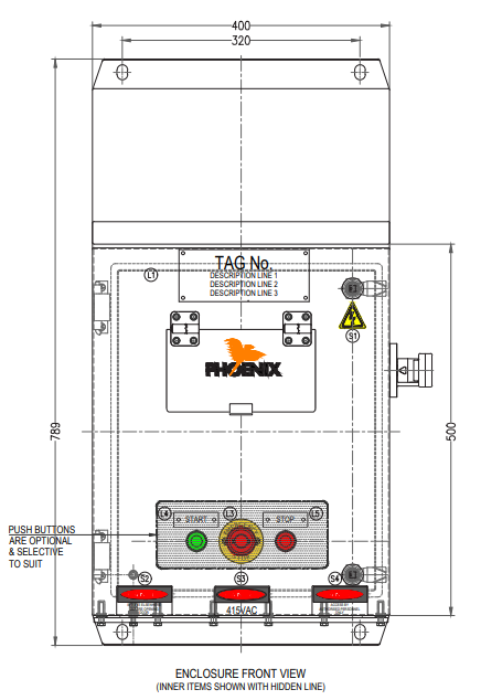 The Phoenix EMS Fully Welded LCS delivers secure, durable electrical control and termination in demanding industrial and mining environments. Its 316 stainless steel construction with IP66 protection ensures reliable performance even in harsh conditions, while internal cable management and top-hat stands simplify installation and maintenance.