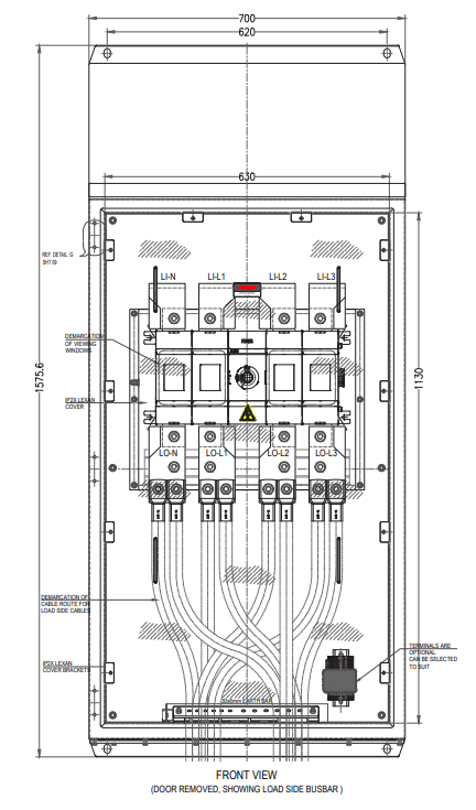 Internal mounting pans and top-hat stands simplify installation, while cable looms secured on the door and clearly numbered, colour-coded terminals make commissioning and maintenance ecient. Ideal for medium- and low-voltage local control and distribution applications.