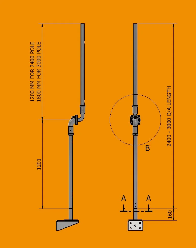 HORNET JNR 90° POLE 40NB/40NB BASE MOUNT POLE