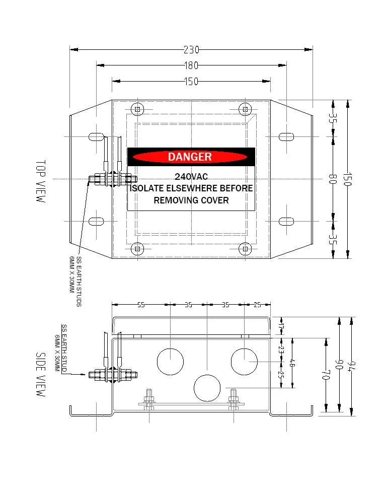 • 3x25mm Dia Holes for Cable glands
